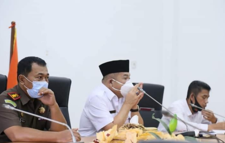 Rantauprapat, Skalainfo.net |Menjelang hari raya Idul Fitri 1442 H 2021 M yang tinggal beberapa hari lagi, pemerintah kabupaten Labuhanbatu dituntut tingkatkan kewaspadaan terhadap penyebaran virus Corona Covid-19 akibat kerumunan dan mudik, himbauan itu disampaikan oleh Menteri Dalam Negeri Tito Karnavian melalui Video confrence yang disaksikan oleh Sekdakab Labuhanbatu Ir.Muhammad Yusuf Siagian, M.MA, Kepala Kejaksaan Negri Rantauprapat, Perwakilan Dandim 0209/LB, perwakilan Polres Labuhanbatu dan gugus tugas Covid-19 di ruang rapat Kantor Bupati Labuhanbatu jalan SM Raja Kecamatan Rantau Selatan.Kabupaten Labuhanbatu provinsi Sumatera Utara. Senin 3/5-2021.