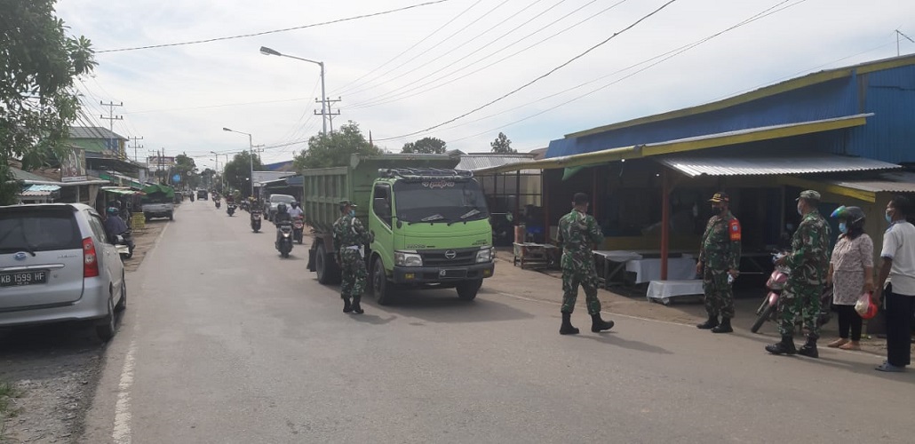 Kegiatan membagikan masker dan himbauan tersebut dilaksanakan oleh personel Kodim 1208/Sambas dan Koramil 01/Sambas yang dipimpin langsung oleh Dandim 1208/Sambas Letkol Inf Setyo Budiyono, S.H., M.Tr.(Han).