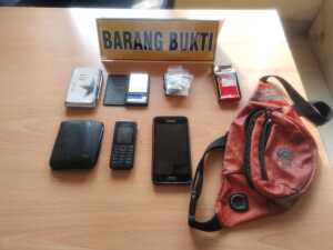 Dari hasil penangkapan tersebut, anggota Resnarkoba Polresta Tangerang mengamankan satu orang tersangka dengan barang bukti 1 (satu) bungkus plastik klip bening kecil berisikan Narkotika jenis Sabu yang dibungkus dalam bungkus rokok Djarum Super, dengan berat bruto 0,35 (nol koma tiga lima) gram, 4 (empat) bungkus plastik klip bening berisikan Narkotika jenis Sabu yang disimpan di dalam kotak plastik kecil bersolasi hitam, dengan berat bruto 2,32 (dua koma tiga dua) gram, 1 (satu) buah timbangan elektrik, 1 (satu) buah tas pinggang berwarna orange, 1 (satu) buah handphone Samsung J2 Prime warna hitam dan 1 (satu) buah handphone Nokia warna hitam.