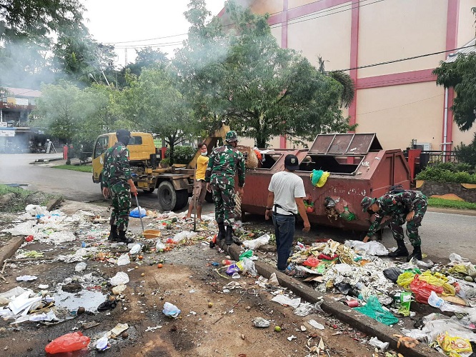 Sanggau, Skalainfo.net| Dalam rangka melestarikan kebersihan lingkungan, personel Yonif 642/Kapuas melaksanakan pembersihan di sekitar Pasar Sentral Sanggau, Kecamatan Kapuas, Kabupaten Sanggau, Kalimantan Barat, Selasa, (1/6/2021).