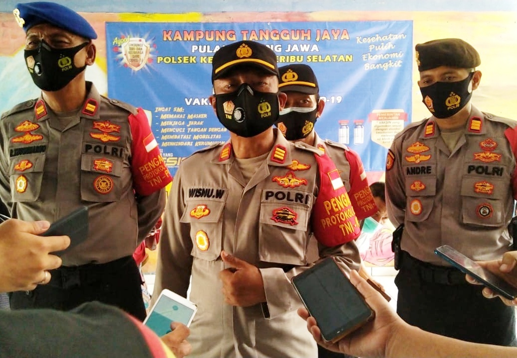 “Hari ini, kami melakukan suntik vaksin terhadap masyarakat Pulau Untung Jawa sejumlah 50 orang. Kedepan kita akan terus melakukan kegiatan seperti ini di pulau-pulau pemukiman lainnya,” kata Kompol Nur Jannah Hayati, Kepala Bagian Sumber Daya Manusia, Polres Kepulauan Seribu yang juga Ketua Pelaksana Kegiatan.
