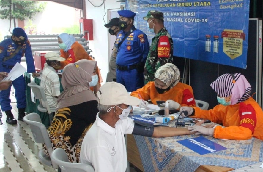 Tercatat, 81 warga masyarakat Pulau Kelapa Kepulauan Seribu Utara yang mendaftarkan diri dan meregistrasi kemudian setelah dilakukan cek suhu badan, tensi darah serta screening semuanya dapat mengikuti suntik vaksin selanjutnya menjalani observasi selama 30 menit.