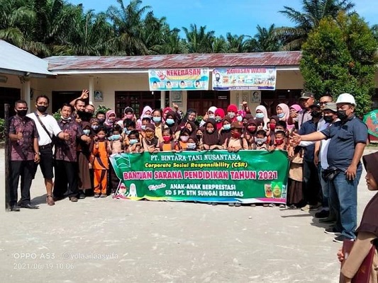 Pasaman-Barat, Skalainfo.net| Sebagai Tanggung Jawab Sosial Lingkungan Perusahaan Perkebunan Kelapa Sawit PT. Bintara Tani Nusantara (Incasi Raya Group) menyalurkan bantuan Corporate Social Responsibility (CSR) kepada murid Sekolah Dasar (SD) Swasta PT. BTN Kecamatan Sungai Beremas untuk yang ke sekian kalinya.