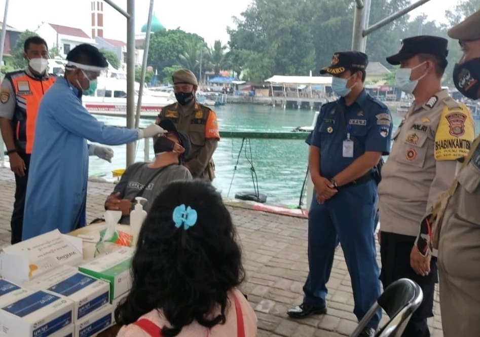 Kapolsek Kepulauan Seribu Utara Polres Kepulauan Seribu AKP Asep Romli mengatakan, kegiatan Swab Antigen kepada warga yang baru tiba dari luar Pulau Seribu sebagai upaya testing untuk mengetahui apakah warga masuk ke pulau dalam keadaan sehat dan tidak terpapar Covid-19.