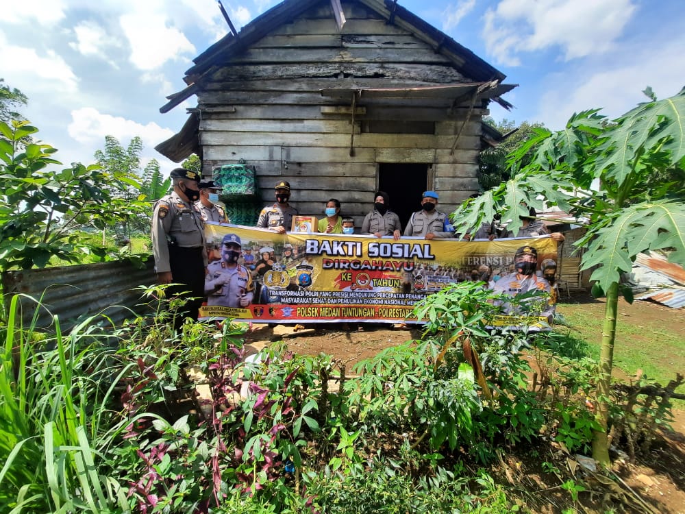 MEDAN, skalainfo.net | Menyambut Hari Ulang Tahun Bhayangkara ke 75, Polsek Tuntungan melaksanakan Bakti Sosial (Baksos), Jum’at (25/6/2021) siang.
