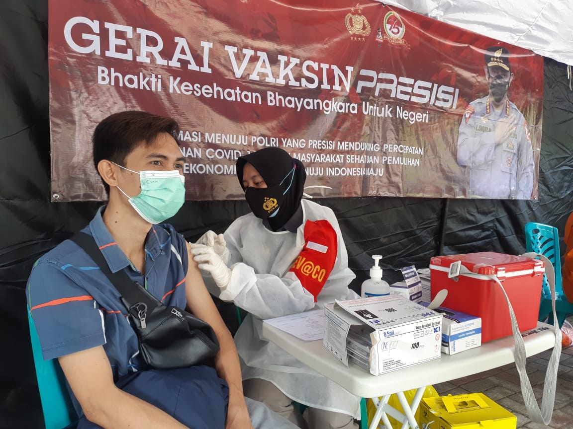 “Setiap hari kami sediakan sebanyak 20 dosis vaksin ASTRAZENECA bagi warga masyarakat dengan persyaratan memiliki KTP, berusia 18 tahun keatas, belum pernah divaksin Covid-19 dan dalam keadaan sehat. Peserta setelah di cek suhu badan, tensi darah dan screening oleh Tim Kesehatan, kemudian dilakukan penyuntikan dan observasi selama 30 menit” jelasnya.