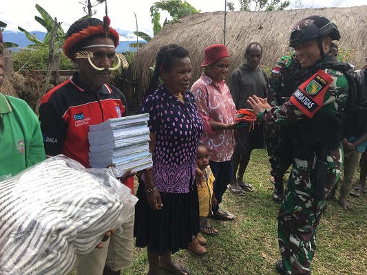 Dalam kesempatan tersebut, Dansatgas Pamrahwan Yonif RK 751/VJS Letkol Inf Dedy membagikan Alkitab, kaos, selimut dan permen kepada masyarakat, Tokoh Agama, dan Tokoh Masyarakat wilayah tersebut.