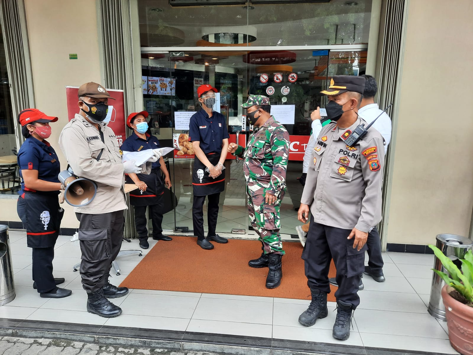 Setelah apel, petugas langsung bergerak ke lokasi restoran siap saji di Jalan Simpang Sutomo Medan. Di lokasi itu, petugas menempelkan sebaran sosialisasi tentang PPKM darurat.