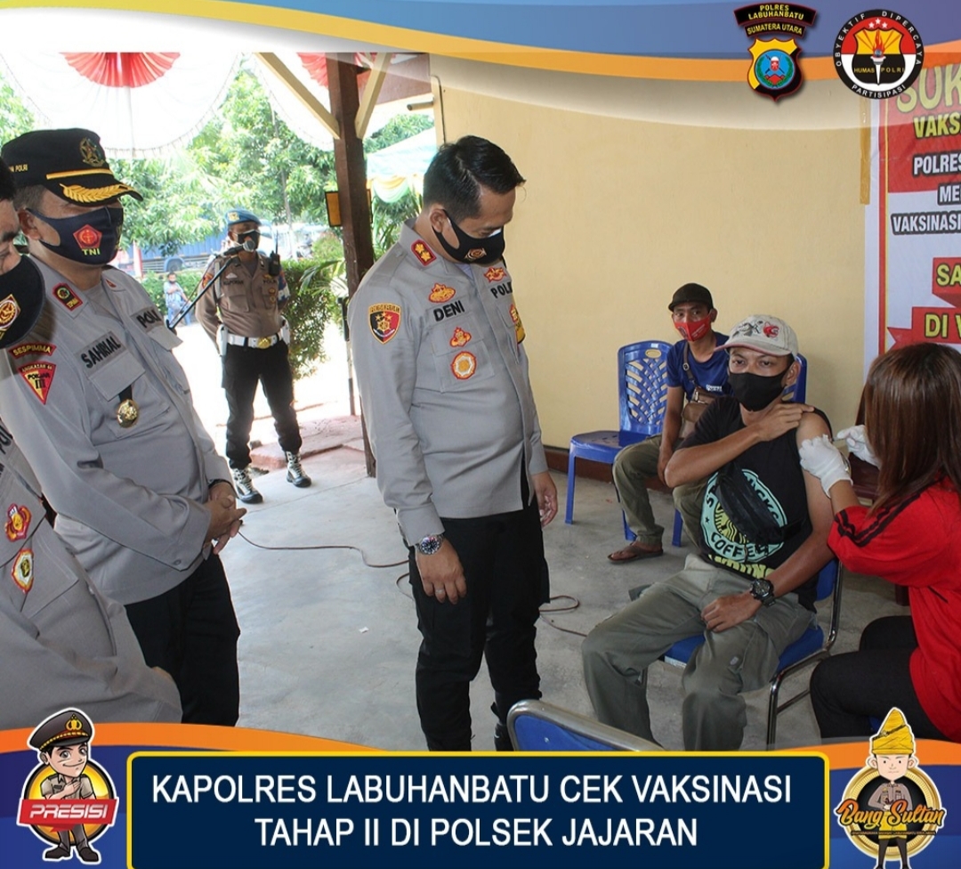 Sekira pukul 10.30.Wib., Bapak Kapolres Labuhanbatu bersama rombongan PJU polres labuhanbatu tiba di polsek Na XI -X Jln.lintas sumatera aek kota batu kabupaten. Labura, mengecek jumlah Vaksin yang tersedia selanjutnya Kapolres Labuhanbatu berserta Rombongan menuju Polsek Kualuh Hulu Jln.sudirman no. 19 Aek Kanopan Kabupaten. Labura dan melakukan pengecekan Jumlah Vaksin dan memberikan arahan kepada masyarakat.
