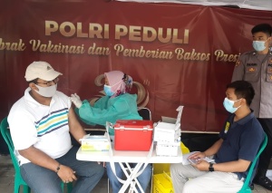 Jajang menambahkan, bentuk kegiatan yang dilakukan adalah pelayanan suntik vaksin dalam upaya percepatan program vaksinasi nasional dan pembagian bansos berupa sembako.