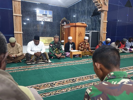 Papua, Skalainfo.net| Anggota Satgas Pamrahwan Yonif RK 751/VJS menghadiri undangan dari Tokoh Masyarakat Walesi pada acara pembacaan doa dan tahlil memperingati 40 hari wafatnya Kepala Suku Walesi Almarhum Bapak Tahuluk Asso, bertempat di Masjid Al-Aqso, Distrik Walesi, Kabupaten Jayawijaya, Papua.