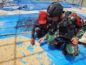 Di sela-sela perbincangannya, bapak Maksimus Lani juga menyuguhkan seduhan kopi untuk seluruh personel Satgas yang datang. “Kopi ini special, kopi pilihan dari Walesi yang kami sebut dengan kopi Lanang. Selain untuk suguhan bagi tamu yang datang, untuk dinikmati sembari bersantai, kopi ini juga berkhasiat untuk meningkatkan stamina pria,” ujarnya.