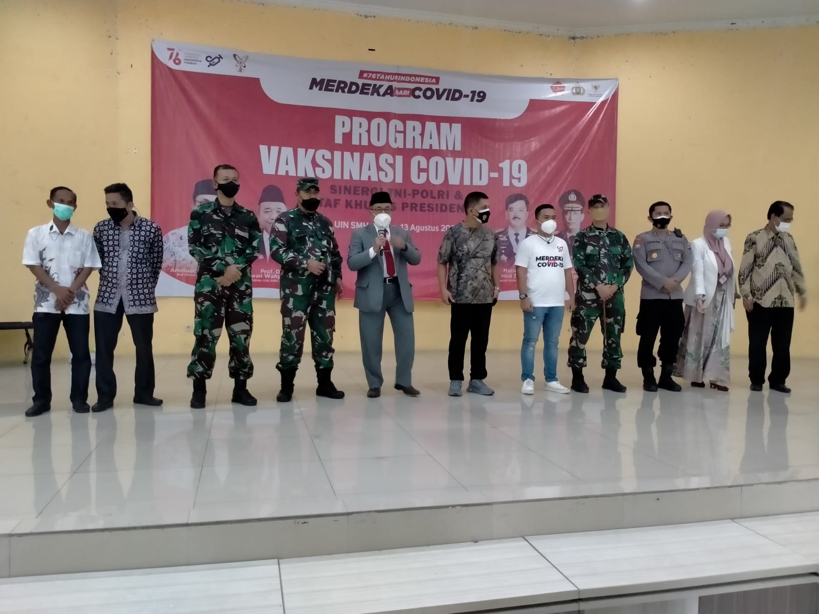 Riduan Hasibuan sebagai asisten Stafsus Presiden Aminuddin Ma’ruf, menyampaikan terima kasih kepada pihak UIN SMH Banten yang sudah bersedia menjadi penyelenggara vaksinasi. Beliau juga mengapresiasi TNI-POLRI yang bekerja keras menyelenggarakan vaksin dengan tanpa kenal waktu.