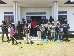 “Pagi ini Satgas Pamrahwan Yonif RK 751/VJS bersama masyarakat menggelar kerja bakti pembersihan lingkungan kantor pemerintahan Distrik Walesi, mengingat beberapa hari lagi tempat tersebut akan digunakan untuk kegiatan peringatan detik-detik Proklamasi 17 Agustus,” jelasnya.