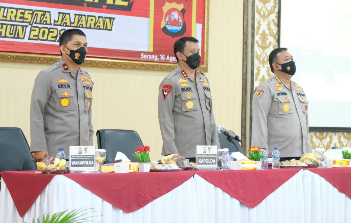 Kota Serang, skalainfo.net | Kepala Kepolisian Daerah Banten Irjen Pol Rudy Heriyanto memimpin Gelar Operasional di Aula Serbaguna Polda Banten, Senin (16/8)2021).