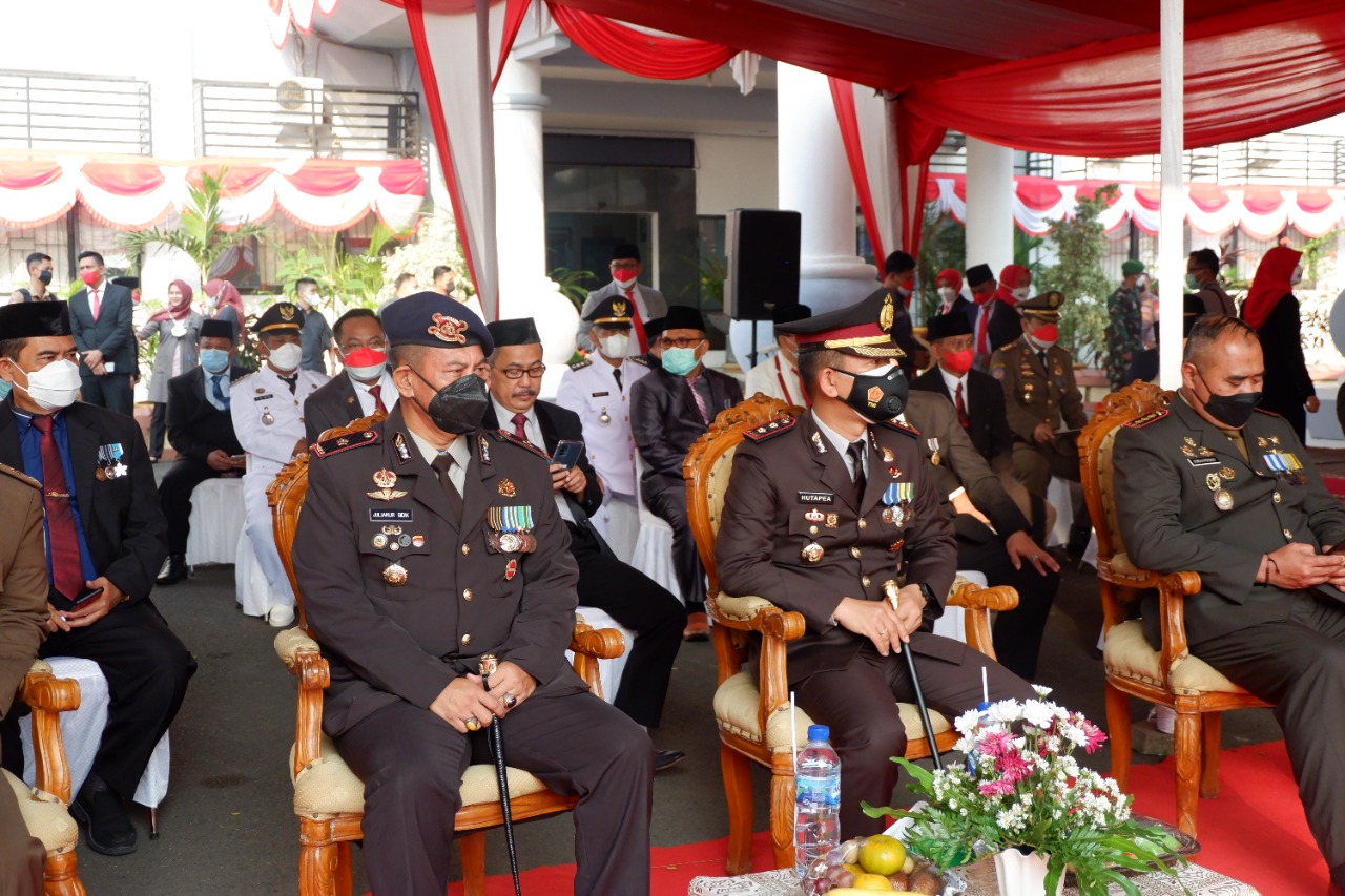 Upacara Pengibaran Bendera Merah Putih dalam rangka memperingati hari Kemerdekaan RI ke-76 yang menjadi Inspektur Upacara Walikota Serang H.Syafrudin, S.Sos, M.Si, sebagi Perwira Upacara Kapolsek Cipocok Jaya Kompol Agus Suprianto, SH., Kasat Samapta Polres Serang Kota AKP Badri Hasan, selaku Komandan Upacara dan pasukan pengibar bendera dari perwakilan Pelajar SLTA se-Kota Serang.
