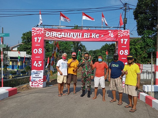 “Pembuatan gapura bersama memasang umbul-umbul, membersihkan lingkungan termasuk kali dengan warga, diharapkan bisa mempererat rasa nasionalisme terlebih lagi menyambut HUT ke-76 RI mengingat gapura ini dapat memperindah akses jalan masuk menuju komplek lain dilingkungan kami,” ungkapnya.