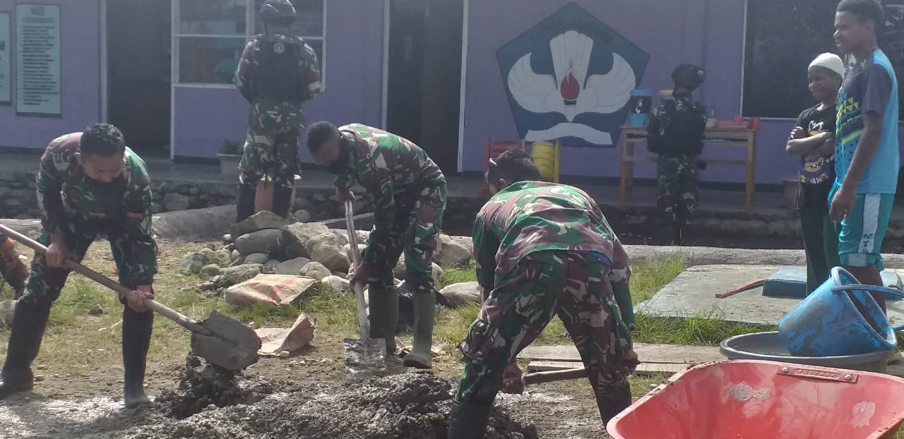 Kali ini, Satgas Pamrahwan Yonif RK 751/VJS melaksanakan karya bakti dengan menyulap lahan kosong yang berada di depan Sekolah Dasar Madrasah Ibtidaiyah Merasuguna Asso, Distrik Walesi, Kab. Jayawijaya, menjadi taman yang siap ditanami berbagai macam bunga, Selasa, (24/08/2021).