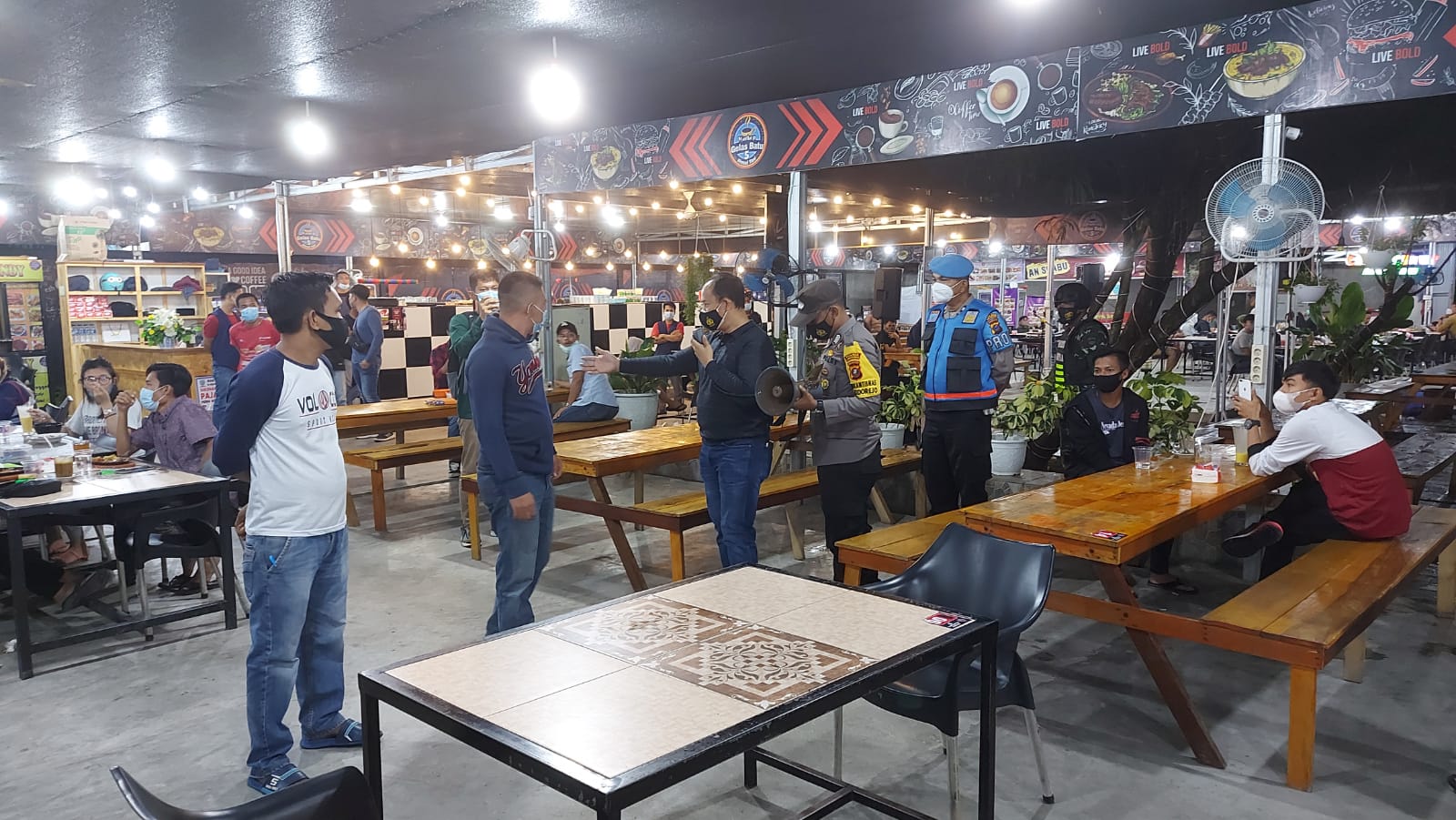 Operasi yustisia itu, dilakukan pada malam hari dengan mendatangi warung, cafe dan tempat dimana banyak kerumunan.”Kita menghimbau agar pengunjung cafe dan warung tetap mengunakan masker” ujar Pawas operasi yustisia AKP Martualesi Sitepu,Rabu (25/8/2021).