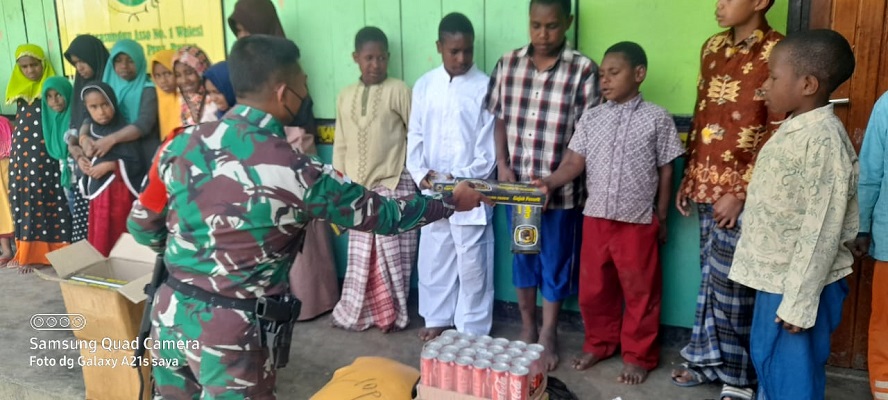 Papua, Skalainfo.net| Dalam rangka berbagi kasih dan rezeki kepada masyarakat yang ada di wilayah penugasan, Satgas Pamrahwan Yonif RK 751/VJS melaksanakan baksos di Pondok Pesantren Al-Istiqomah, Distrik Walesi, Kabupaten Jayawijaya, Papua, Sabtu, 28/08/2021.