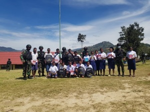 Komandan Kompi Garuda Satgas Yonif 751 Lettu Inf Gerry Aritonang menyampaikan bahwa selain melaksanakan pengamanan daerah rawan, Satgas juga memperhatikan apa yang menjadi kekurangan masyarakat ditempat bertugas. “Kami melihat banyak murid-murid yang berangkat ke sekolah tidak menggunakan tas, sehingga kami berinisiatif untuk memberikan bantuan tas tersebut,” ujarnya.