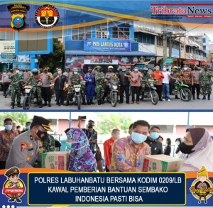 Penyaluran sembako langsung ke rumah rumah warga kurang mampu yang diantarkan para Bhabinkamtibmas Polres Labuhanbatu dan Babinsa Kodim 0209/LB terdiri dari 1.000 karung beras dan 1.000 kotak mie instan.(B.Munthe/red).