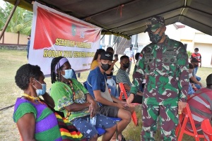“Kodam XVII/Cenderawasih akan melaksanakan serbuan vaksinasi di seluruh fasilitas kesehatan TNI-AD yang ada di Prov. Papua. Hal ini akan terus dilakukan khususnya yang berada di 4 klaster PON XX yaitu Kota Jayapura, Kab. Jayapura, Kab. Mimika dan Kab Merauke serta 1 Kabupaten penyangga yaitu Kab. Keerom yang diharapkan mencapai target 70% sebelum pelaksanaan PON XX,” terang Pangdam.