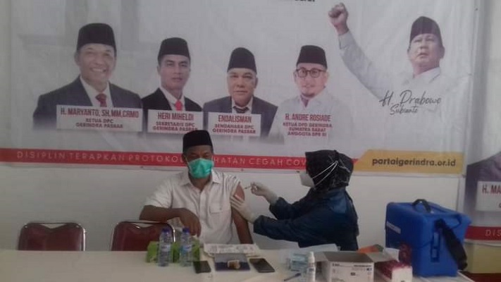 Ketua DPD Partai Gerindra Sumbar Andre Rosiade mengapresiasi kegiatan vaksinasi di Pasbar. Menurutnya, vaksinasi harus terus digelar agar lebih cepat membuat mayoritas warga Sumbar dan Indonesia sudah divaksin. “Terima kasih kepada DPC Gerindra Pasbar dan Kota Padang yang telah menggelar vaksinasi di Pasbar. Ini juga harus di ikuti oleh DPC Gerindra Kabupaten/Kota lainnya di Sumbar,” kata Andre Rosiade. (Red/Buyung).
