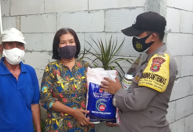 Kapolsek Kepulauan Seribu Utara Polres Kepulauan Seribu AKP Asep Romli menjelaskan, personelnya membagikan bansos kepada warga terdampak Covid-19 di Pulau Harapan.