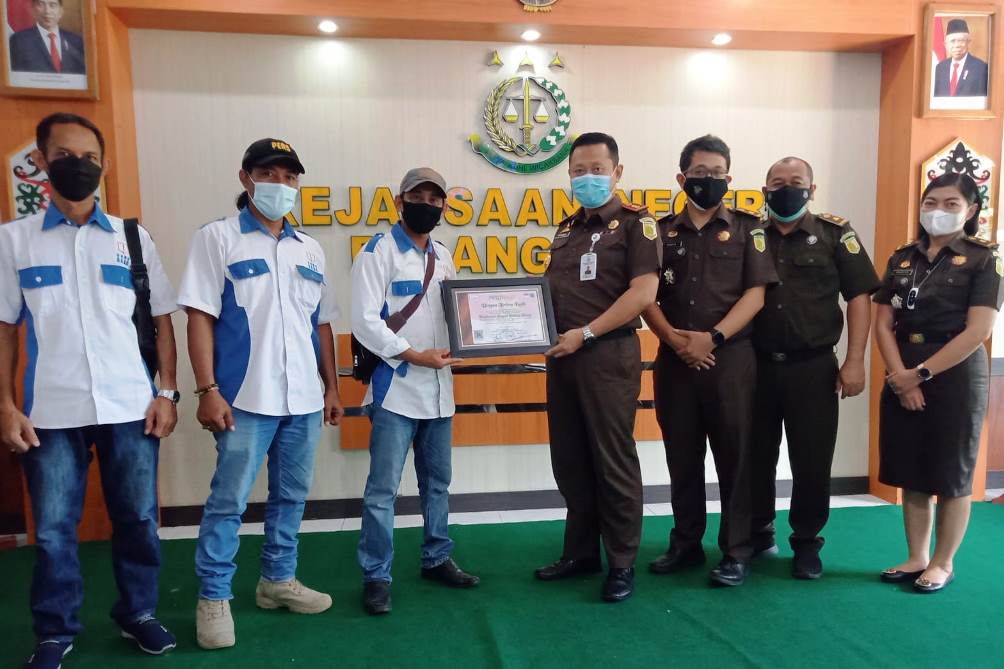 Pulang Pisau, skalainfo.net | Ketua Umum Dewan Pengurus Nasional Persatuan Pewarta Warga Indonesia Wilson Lalengke, S.Pd, M.Sc, M.A. melalui Ketua DPC PPWI Kabupaten Pulang Pisau, Provinsi Kalimantan Tengah, Riduan A. Karim, didampingi Pengurus PPWI secara langsung menyerahkan Piagam Penghargaan kepada Kepala Kejaksaan Negeri Pulang Pisau, Dr. Priyambudi, S.H., M.H. di Kantor Kejaksaan Negeri Pulang Pisau pada Selasa (14/9/2021). Riduan mengatakan piagam tersebut sebagai wujud apresiasi dari Dewan Pengurus Nasional PPWI kepada Kepala Kejari Pulang Pisau.