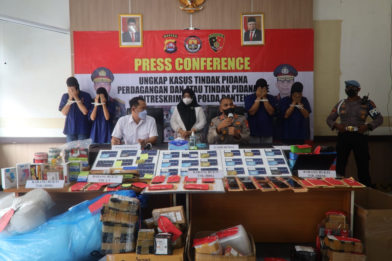 Dalam kesempatan tersebut, Dirreskrimsus Polda Banten Kombes Pol Dedi Supriyadi mengatakan berdasarkan laporan Polisi pada tanggal 27 Agustus 2021, penyidik berhasil mengungkap 4 pelaku tindak pidana perdagangan dan ITE.