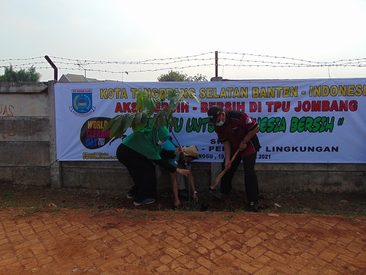 World Cleanup Day 2021 yang dilaksanakan di TPU Rawa Lele, Jombang, Ciputat, Kota Tangsel, berjibaku dengan elemen masyarakat mengusung thema “Bersatu Untuk Indonesia Bersih,” sinergy Disperkimta dan penggiat lingkungan serta rumah maggot Sabhara, bank sampah se-Kecamatan Ciputat, bank sampah Melati, bank sampah Sakura, Pramuka, Karang Taruna Kelurahan Jombang dan perkumpulan pengurusan jenazah Purnahayati.