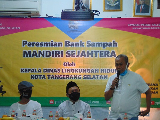 Sambutan istimewa yang dilantunkan oleh Kabid Kebersihan DLH Kota Tangsel, Wismansyah Musa, S.T., M.Si mengatakan, sangat mengapresiasi berdirinya bank sampah Mandiri Sejahtera yang di naungi Yayasan Peduli Tali Bangsa. Masih dikatannya untuk sampah di Kota Tangsel itu bila dihitung-hitung untuk 2 tahun lalu mencapai kurang lebih 970 ton perhari, dan Alhamdulillah setelah saya ditugaskan untuk mengurus penanganan sampah ya Alhamdulillah saat ini sampah yang diangkut ke TPA Cipeucang mencapai 500 ton perhari.