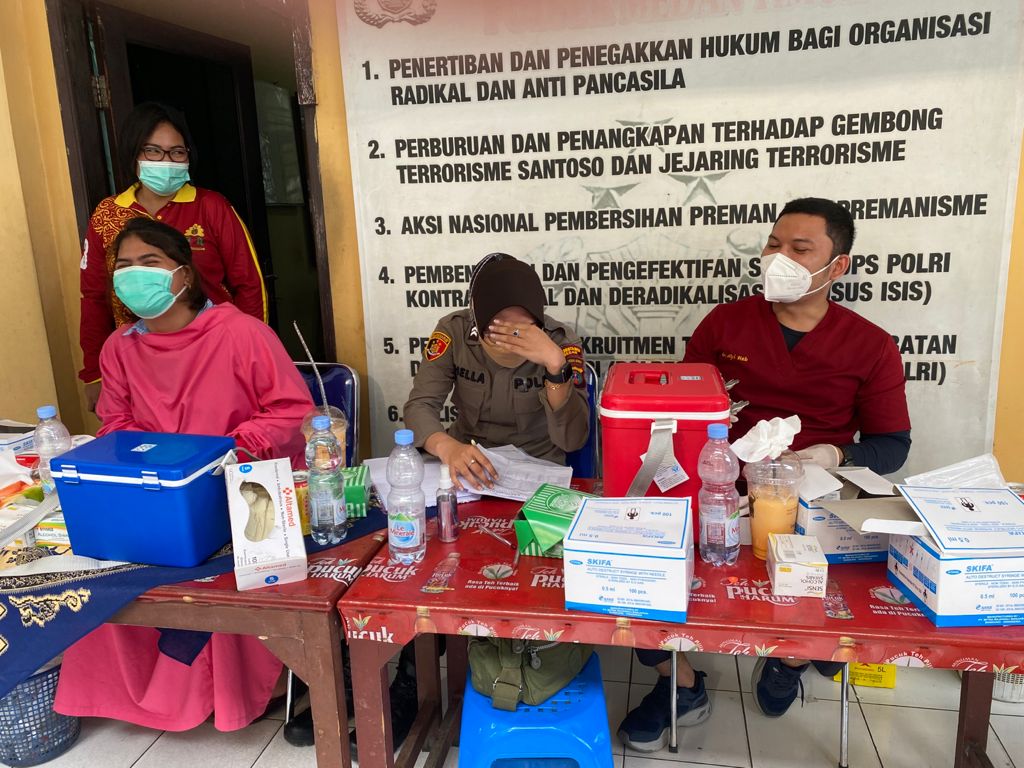 MEDAN, skalainfo.net | Kepolisian Sektor (Polsek) Medan Timur terus mempercepat program vaksinasi kepada masyarakat dalam mendukung upaya pemerintah menekan penyebaran pandemi Covid-19 di Kota Medan.