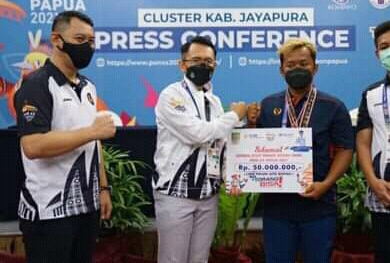 Sedangkan Peraih medali emas yang sudah diberikan bonus Rp 50 juta secara simbolis oleh Pj.Bupati Kabupaten Bekasi Dani Ramdan adalah dari Cabang Olahraga (Cabor) Gantole, Riko Bahudin di Hotel Grand Alison, Kabupaten Jayapura.