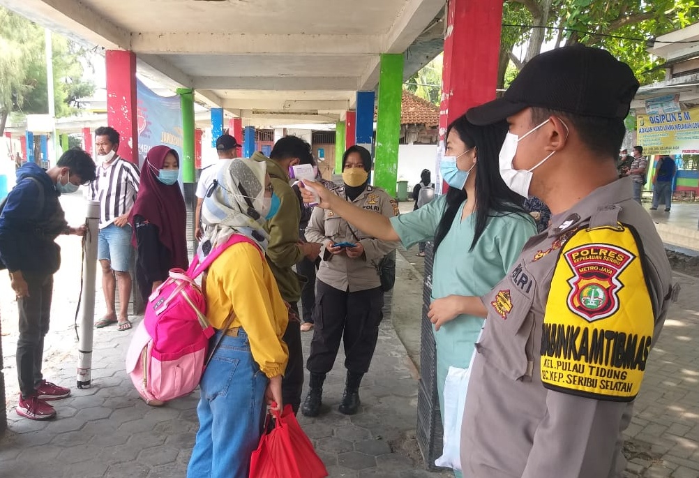 Diketahui, sejumlah 25 warga tiba di Dermaga Kedatangan Pulau Tidung, setelah diberikan himbauan ProKes, melakukan scan barcode aplikasi Peduli Lindungi oleh aparat warga diminta untuk langsung ke rumah masing-masing atau ke tempat tujuan.