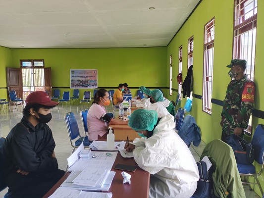 Babinsa Koramil 02/Tigi Sertu Djoko Rianto yang hadir melaksanakan pengawasan dan monitoring mengungkapkan pihaknya membantu para peserta vaksinasi dan melakukan pengawasan serta penegakan protokol kesehatan (prokes).