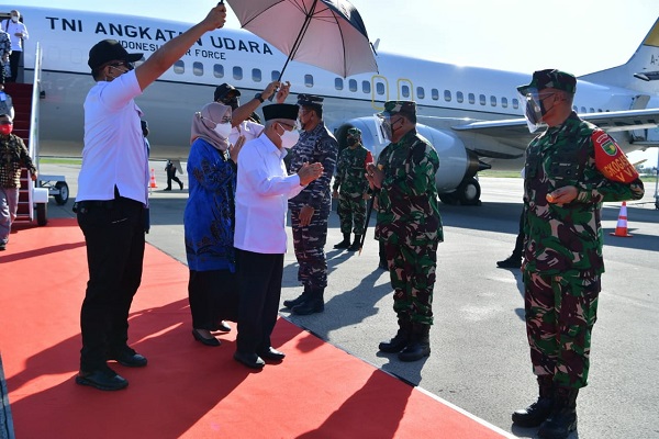 Setibanya di Bandara Sentani Jayapura, Wakil Presiden RI KH. Ma’ruf Amin didampingi Ibu Wury Ma’ruf Amin menutup secara resmi PON XX 2021 bertempat di Stadion Utama Lukas Enembe, Sentani, Kabupaten Jayapura.