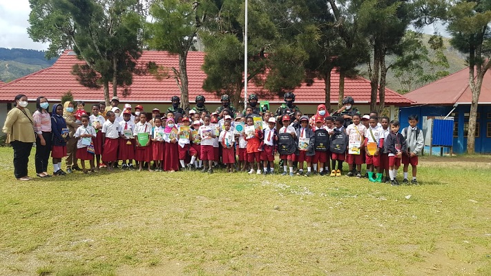 “Saya mewakili dari para murid dan seluruh guru mengucapkan terima kasih kepada bapak-bapak tentara yang lagi tugas di Tiom ini atas bantuan tas dan alat tulis kepada para murid disekolah ini,” ucapnya.