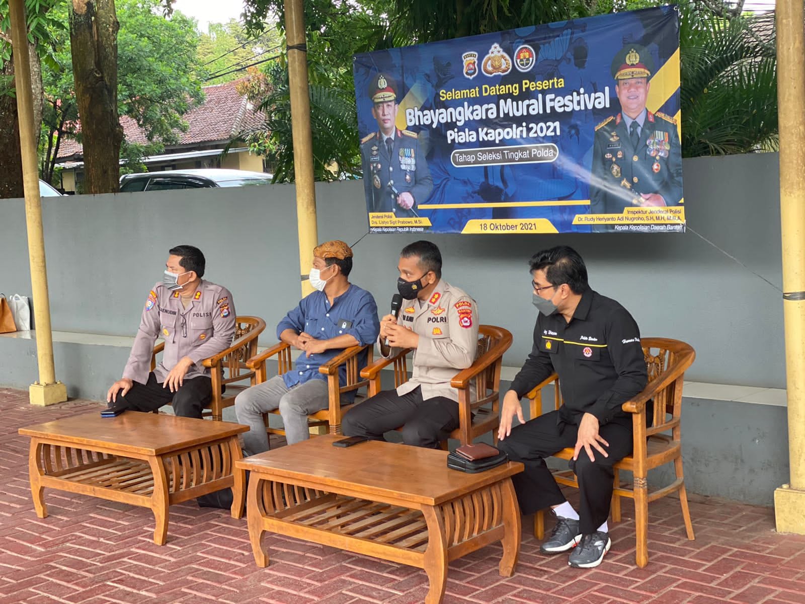 “Pada hari ini kita gelar tahap seleksi tingkat Polda Bhayangkara Mural Festival Piala Kapolri 2021. Media yang digunakan pada hari ini adalah kanvas,” ujar Kabid Humas Polda Banten AKBP Shinto Silitonga.