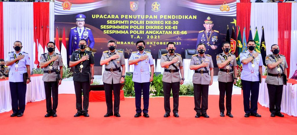 Jakarta, skalainfo.net | Panglima TNI Marsekal Hadi Tjahjanto dan Kapolri Jenderal Listyo Sigit Prabowo menghadiri penutupan pendidikan Sespimti Polri Dikreg ke-30, Sespimen Polri Dikreg ke-61, dan Sespimma Polri angkatan ke-66. Dalam kesempatan itu, Jenderal Sigit meminta seluruh perwira lulusan tersebut menjadi pemimpin yang mengayomi masyarakat dan anggotanya.