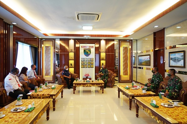 Jayapura, Skalainfo.net| Panglima Kodam XVII/Cenderawasih Mayjen TNI Ignatius Yogo Triyono, M.A., menerima audiensi dari Pengurus PMI Pusat Letjen TNI (Purn) Sumarsono dan Kepala Delegasi Regional ICRC untuk Indonesia dan Timor Leste Alexandre Faite beserta rombongan, bertempat di Ruang Cycloops Makodam XVII/Cenderawasih, Jayapura, Kamis, (4/11/2021).