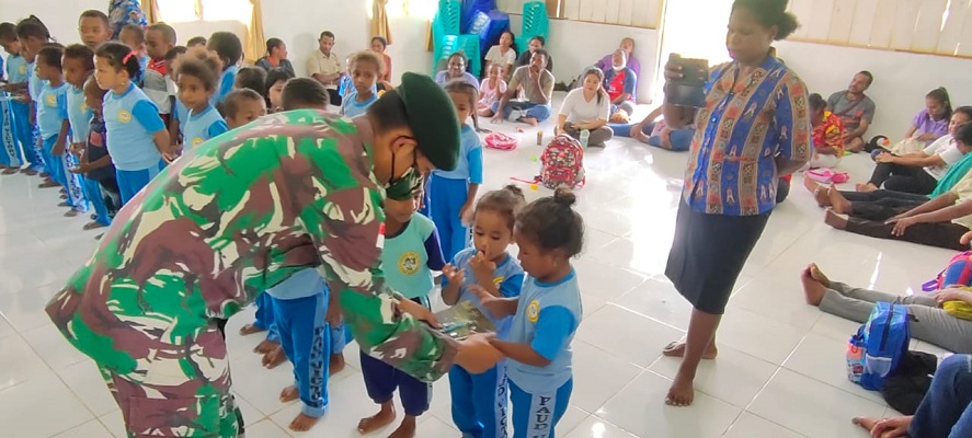 “Pembinaan teritorial yang dilakukan personel satgas sasarannya bukan hanya kepada masyarakat yang sudah dewasa namun kami juga melakukan kunjungan kepada anak usia dini, yakni para murid-murid Paud yang ada di wilayah penugasan untuk diberi motivasi dan semangat dalam sekolah dan belajar dengan harapan agar dari mulai usia dini mereka sudah mempunyai semangat dan cita-cita,” kata Dansatgas. (Red/Bdn).