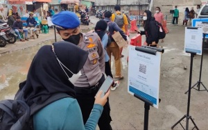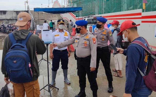 “Setelah kita berikan himbauan agar warga dan wisatawan menerapkan protokol kesehatan saat diperjalanan dan sesampainya di pulau tujuan, kemudian para wisatawan kita minta melakukan scan barcode aplikasi peduli lindungi,” jelas Darno.