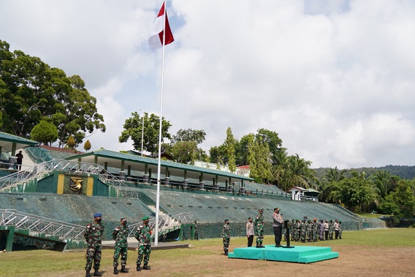 Turut hadir Danlantamal X Jayapura Brigjen TNI (Mar) Feryanto P. Marpaung, Danlanud Silas Papare Marsma TNI Budhi Achmadi dan Danrem 172/PWY Brigjen TNI Izak Pangemanan. (Red/Bdn).
