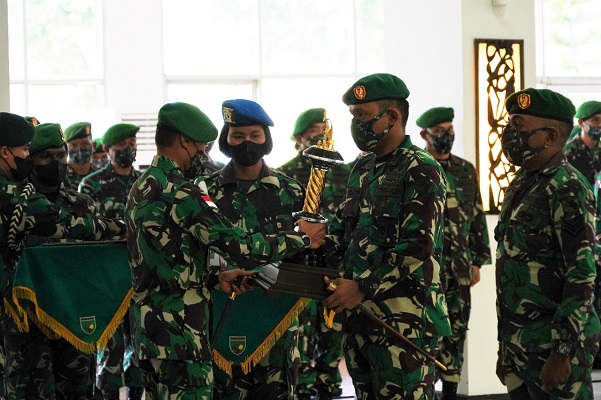 Jayapura, Skalainfo.net| Panglima Kodam XVII/Cenderawasih Mayjen TNI Ignatius Yogo Triyono, M.A memberikan Piagam Penghargaan Kasad dalam Lomba Pembinaan Teritorial (Binter) TA 2021 dan Kenaikan Pangkat Luar Biasa (KPLB) Operasi Militer Selain Perang (OMSP) kepada personel Kodam XVII/Cenderawasih yang berprestasi, bertempat di Aula Tonny A. Rompis, Makodam XVII/Cenderawasih, Kamis, (11/11/2021).