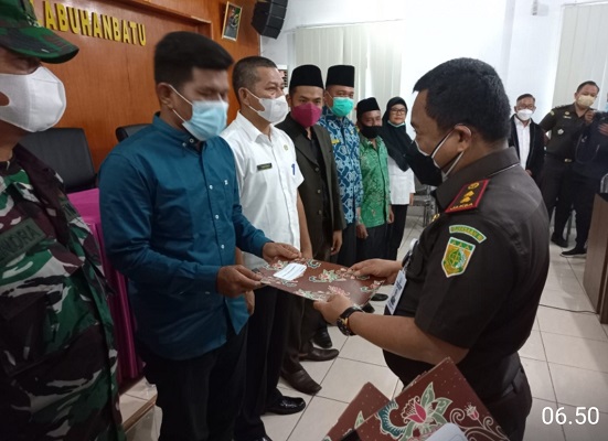 Di akhir acara, Kepala Kejaksaan Negeri Labuhanbatu secara simbolis menyerahkan Surat Keputusan Kepala Kejaksaan Negeri Labuhanbatu Tentang Pembentukan Tim Koordinasi Pengawasan Aliran Kepercayaan Masyarakat dan Aliran Keagamaan Dalam Masyarakat Tingkat Kabupaten Labuhanbatu dan Tingkat Kabupaten Labuhanbatu Utara. (Red/B.Munthe).
