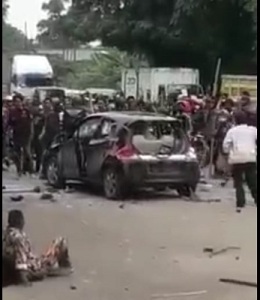 Sesampainya didepan Hotel Resinda kedua anggota GMBI tersebut bertemu dengan masa GMPI yang lagi kompoy menuju Kawasan KIIC Karawang, sehingga terjadilah bentrokan yang mengakibatkan kedua anggota GMBI menjadi bulan-bulanan Ormas GMPI, dan kendaraan mobil Brio yang dikendarai anggota LSM GMBI pun ikut menjadi bulan-bulan Ormas GMPI sehingga kendaraan tersebut rusak berat.
