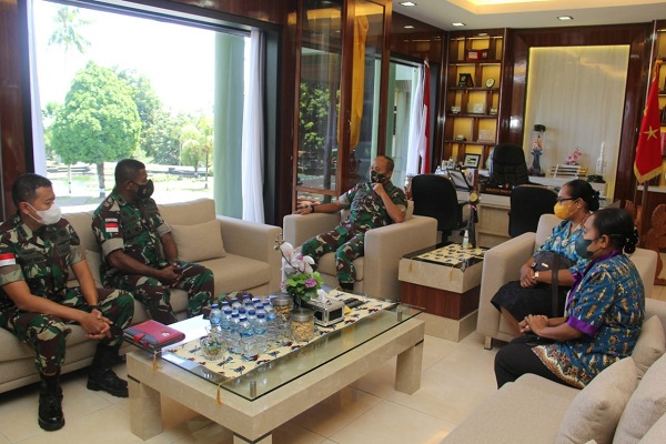 Jayapura, Skalainfo.net| Pangdam XVII/Cenderawasih Mayjen TNI Ignatius Yogo Triyono, M.A menerima kunjungan kerja dan audiensi dari Pendeta Ibu Christina Mawena, S.Th Jemaat GKI Dispora Asrama Koramil Hawai Sentani, bertempat di ruang kerja Pangdam XVII/Cenderawasih, Jumat, (3/12/2021).