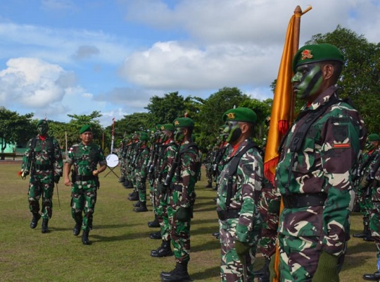 Merauke, Skalainfo.net| Danrem 174 Merauke Brigjen TNI Bangun Nawoko memimpin upacara serah terima jabatan Komandan Batalyon Infanteri 757/GV dari Letkol Inf Ferizal R, S.I.P kepada pejabat baru Letkol Inf Baskoro Wijaya Atmanto, S.E, bertempat di lapangan Markas Yonif 757/Ghupta Vira, Distrik Kurik, Kabupaten Merauke, Rabu, (8/12/2021).